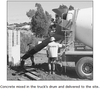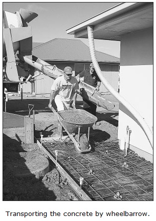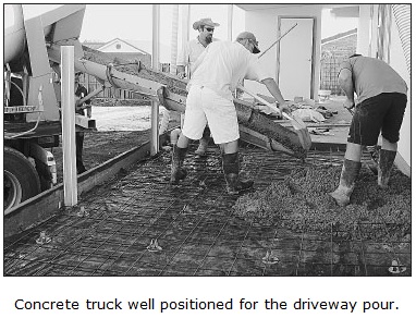 The photograph at the bottom of the previous page shows the concrete truck in a good position to start placing concrete for the driveway. The workers are controlling the chute to place the concrete where it is required.