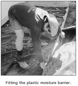 The photograph above shows a construction worker cutting the plastic to size with a safety knife. The plastic should fit neatly into the area of the slab.