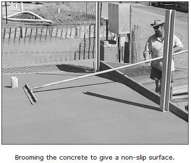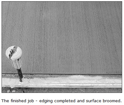The photograph below shows the worker using a long handled concreter’s broom to give a textured surface.