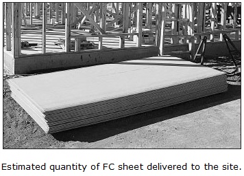 Sheet materials such as plasterboard, particleboard flooring, plywood and fibre cement are calculated in the sheet sizes to suit the job and priced per square metre with allowances as required.
