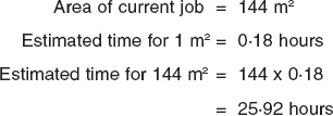 Unit rates can be used in costing as well as for estimating quantities. For many items a single rate can be used for quantity and cost. In the example on page 212, the job takes 0·18 hours for every square metre.