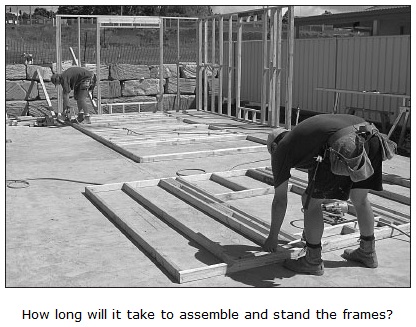 You could calculate the unit rate from the total linear metres of framing in a past job and the total time it took to assemble and stand the frames.
