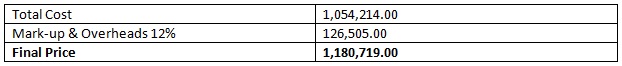 The final price of the job is found by applying mark-up and overhead rates to the total cost as shown in the table.